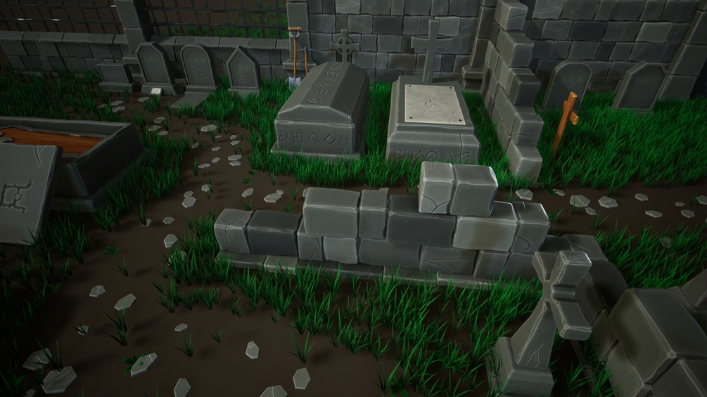 • TombStones, crosses and graves are modular  (separated in differents parts to assemble)
